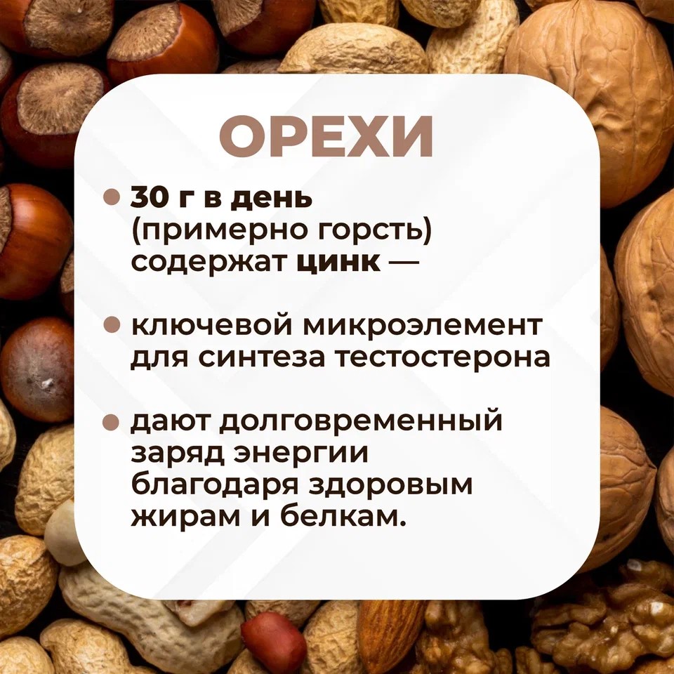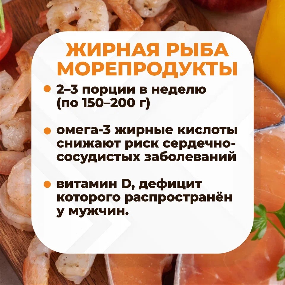 На мужское здоровье можетсущественно влиять правильный выбор продуктов. Какие продукты позволяют лучше справляться с физическим и эмоциональнымнапряжением, а также с возрастными изменениями, рассказываем в карточках